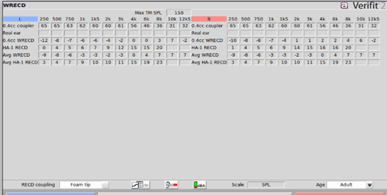 Figure 2: The patient’s real ear to coupler difference (RECD).