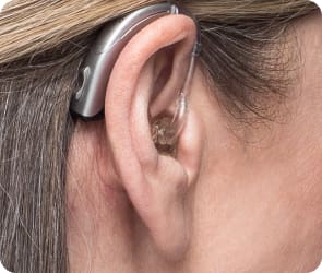 Suited to address all levels of hearing loss, the available features of BTE hearing aids include custom-formed earmolds (domes) for a more comfortable fit and open-canal earpieces to eliminate the “plugged up” feeling some users experience. They come with traditional batteries or a rechargeable option, and you can choose the color that you’re most comfortable with as well.